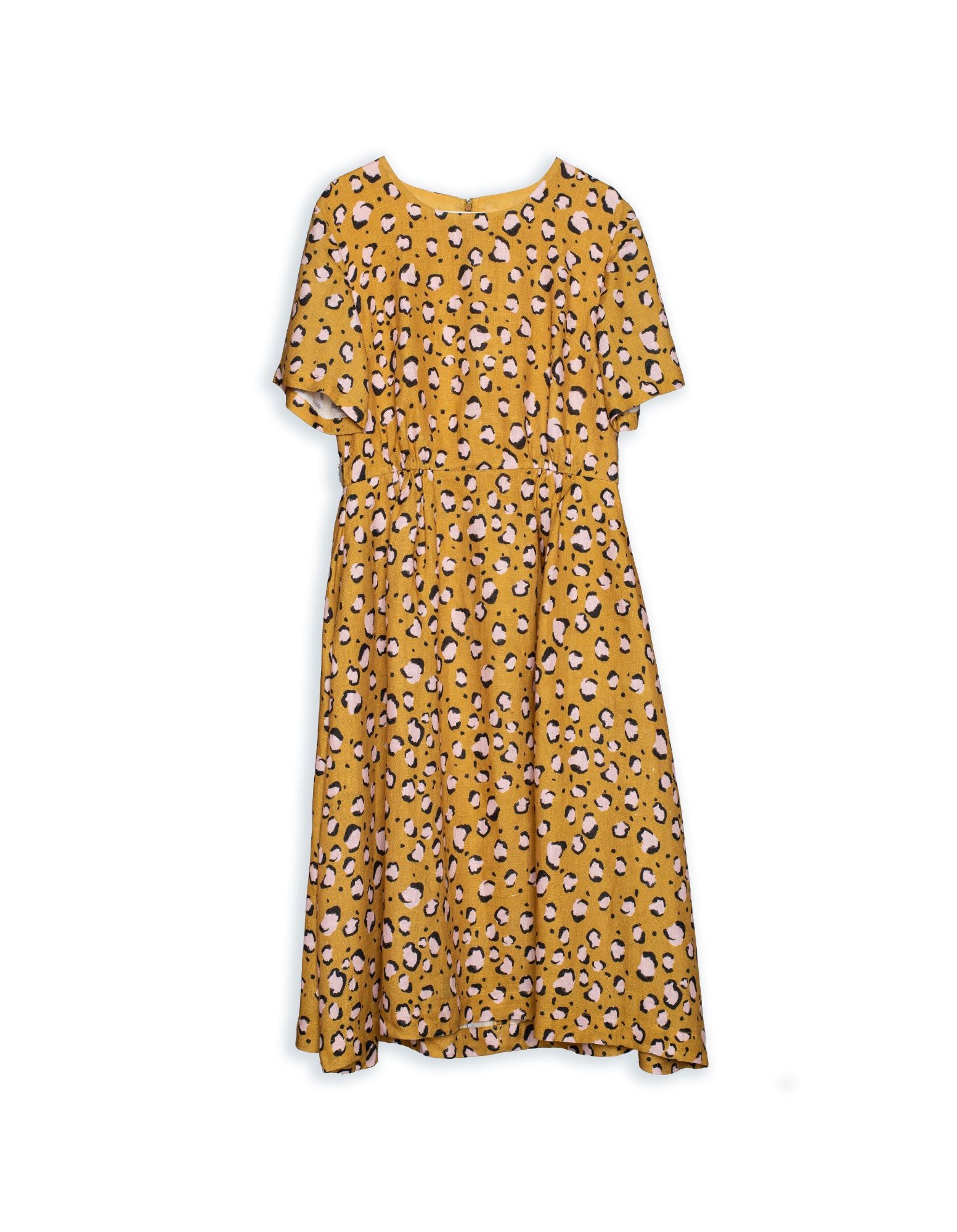 The Dorothy is a rayon/linen dress with a crew neck and gathering at the side waist seam at front and back. The dress has side-seam pockets! and is fastened at the back with an invisible zip and hook & eye. The dress bodice is lined.
